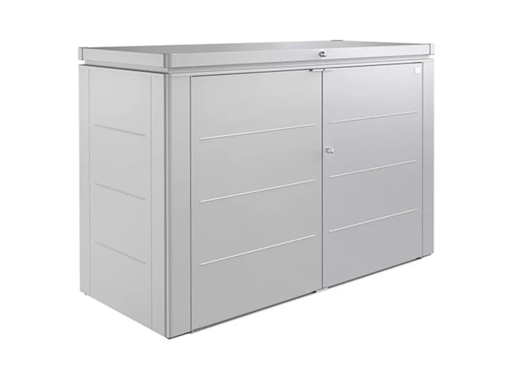 A Biohort HighBoard® egy multifunkcionális prémium kerti tárolószekrény, amely ideális megoldást kínál kültéri tárolási problémákra. A praktikus kialakítás lehetővé teszi a nagyobb eszközök vagy szemeteskukák egyszerű tárolását, miközben a tároló esztétikusan illeszkedik a kert vagy a terasz környezetéhez.