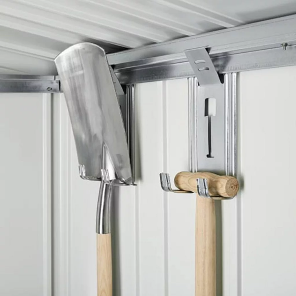 A széles dupla ajtó megkönnyíti a nagyobb eszközök, például fűnyírók, kerékpárok vagy kerti bútorok be- és kipakolását. A masszív tetőszerkezet akár 150 kg/m² hóterhelést is elbír, és megfelelő rögzítés mellett akár 12-es szélerősségig viharálló.
