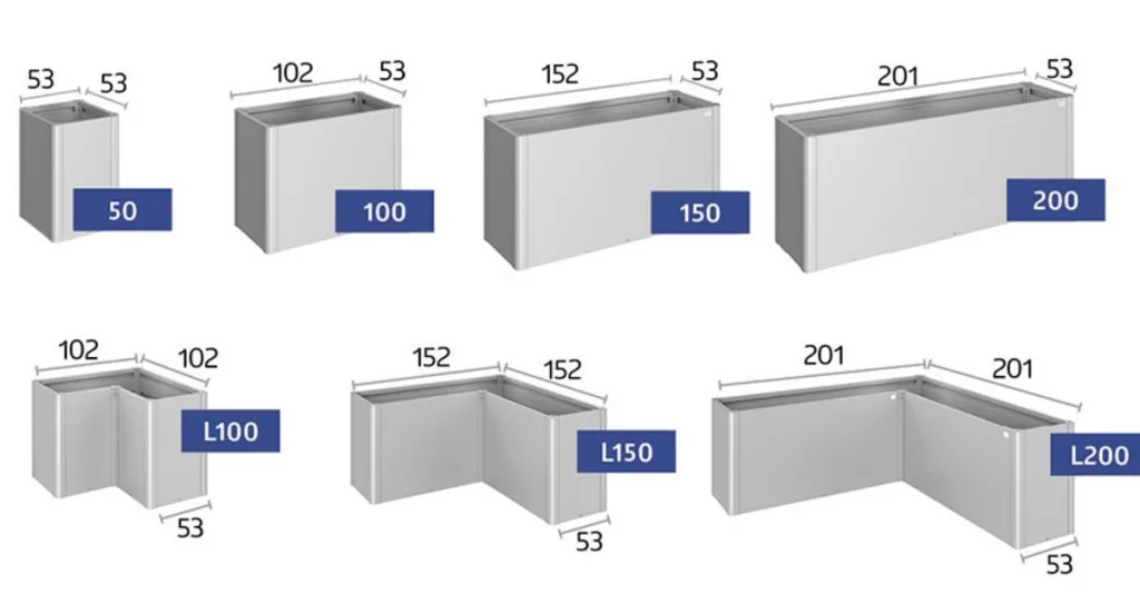 A Belvedere virágágyás több méretben és magasságban elérhető, így könnyen igazítható a kert vagy a terasz adottságaihoz: