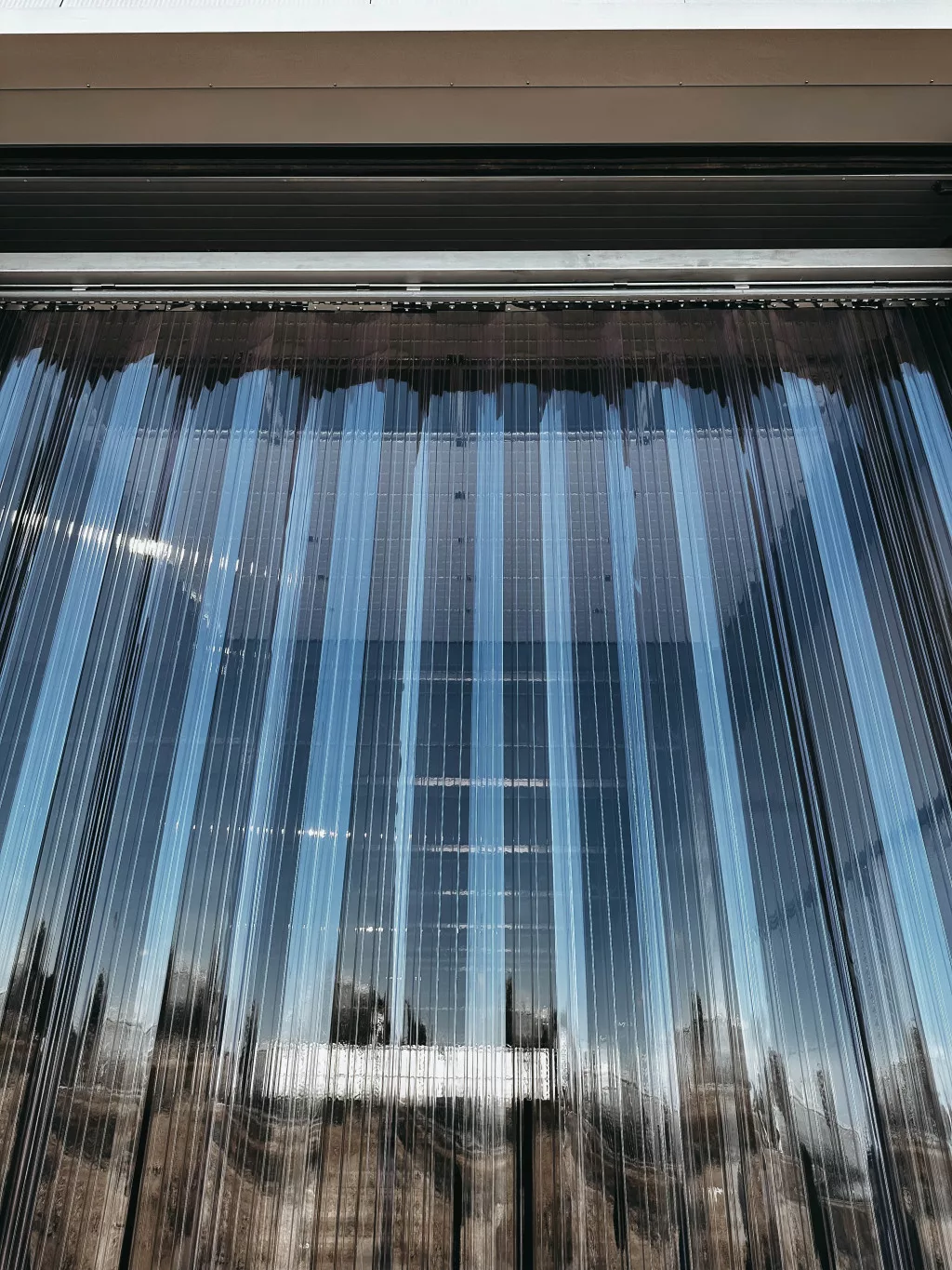 Ajánlott alkalmazás: A normál bordázott PVC hőfüggöny 3510 × 3550 mm ideális választás intenzív forgalmú nyílásokhoz, ahol a gyakori anyagmozgatás jellemző.