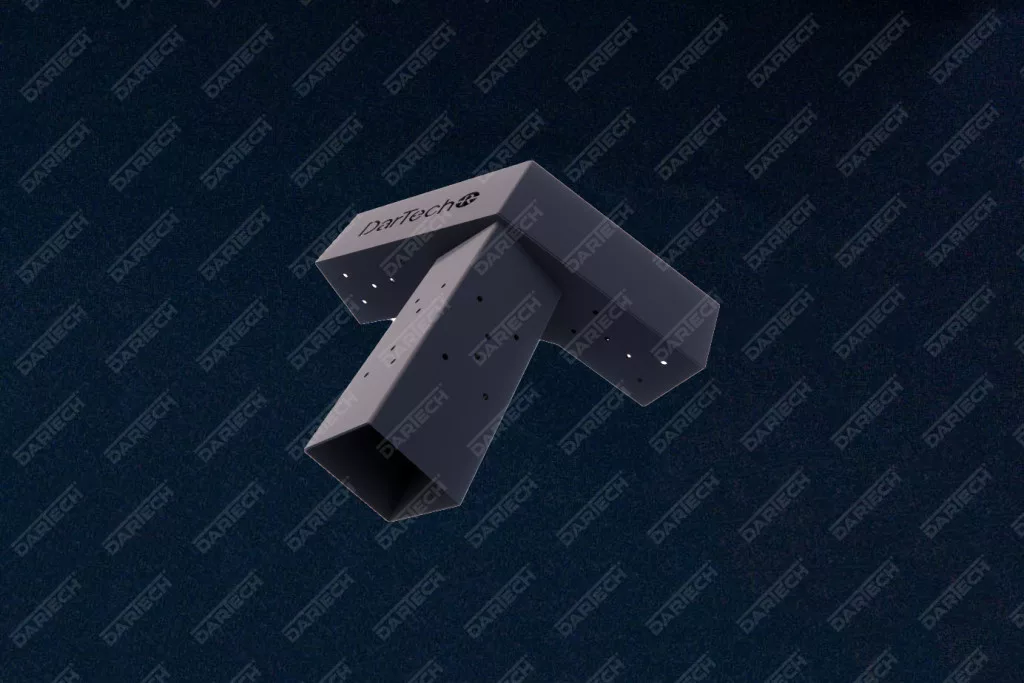 Az elemek 2 mm vastagságú acéllemezből készülnek, amelyet fekete porfestett bevonattal láttak el a maximális tartósság és korrózióvédelem érdekében. A csatlakozók belső mérete 94 × 94 mm, így ideális 100 × 100 mm-es (10 × 10 cm-es) gerendákhoz, figyelembe véve a gyalulás utáni méretcsökkenést.