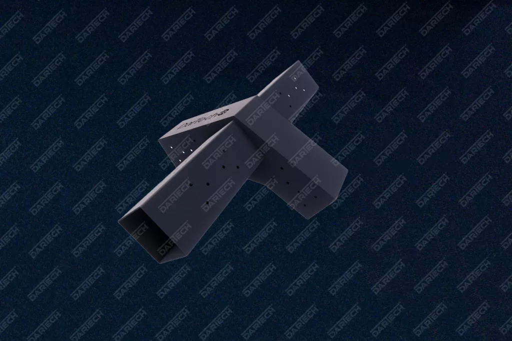 Az elemek 2 mm vastagságú acéllemezből készülnek, amelyet fekete porfestett bevonattal láttak el a maximális tartósság és korrózióvédelem érdekében. A csatlakozók belső mérete 94 × 94 mm, így ideális 100 × 100 mm-es (10 × 10 cm-es) gerendákhoz, figyelembe véve a gyalulás utáni méretcsökkenést.
