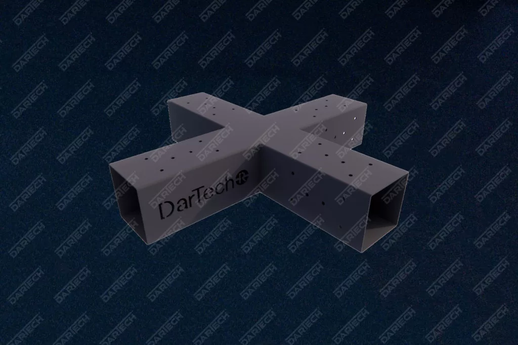 Az elemek 2 mm vastagságú acéllemezből készülnek, amelyet fekete porfestett bevonattal láttak el a maximális tartósság és korrózióvédelem érdekében. A csatlakozók belső mérete 94 × 94 mm, így ideális 100 × 100 mm-es (10 × 10 cm-es) gerendákhoz, figyelembe véve a gyalulás utáni méretcsökkenést.