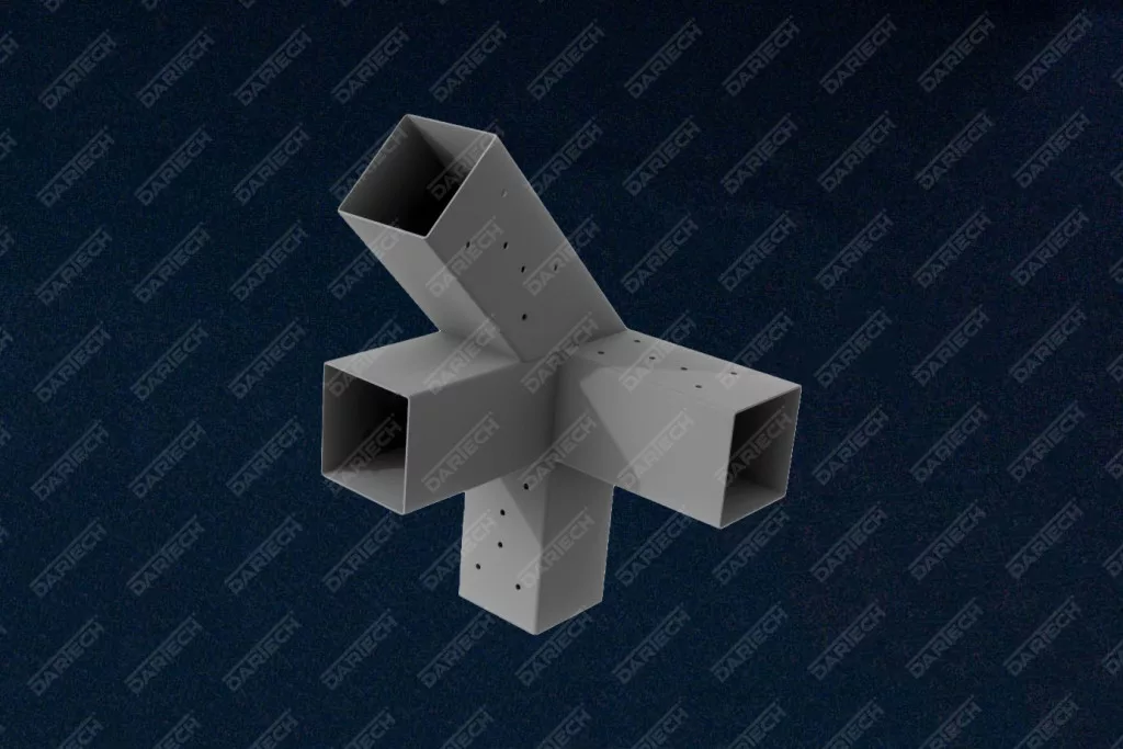 Az elemek 2 mm vastagságú acéllemezből készülnek, amelyet fekete porfestett bevonattal láttak el a maximális tartósság és korrózióvédelem érdekében. A csatlakozók belső mérete 94 × 94 mm, így ideális 100 × 100 mm-es (10 × 10 cm-es) gerendákhoz, figyelembe véve a gyalulás utáni méretcsökkenést.