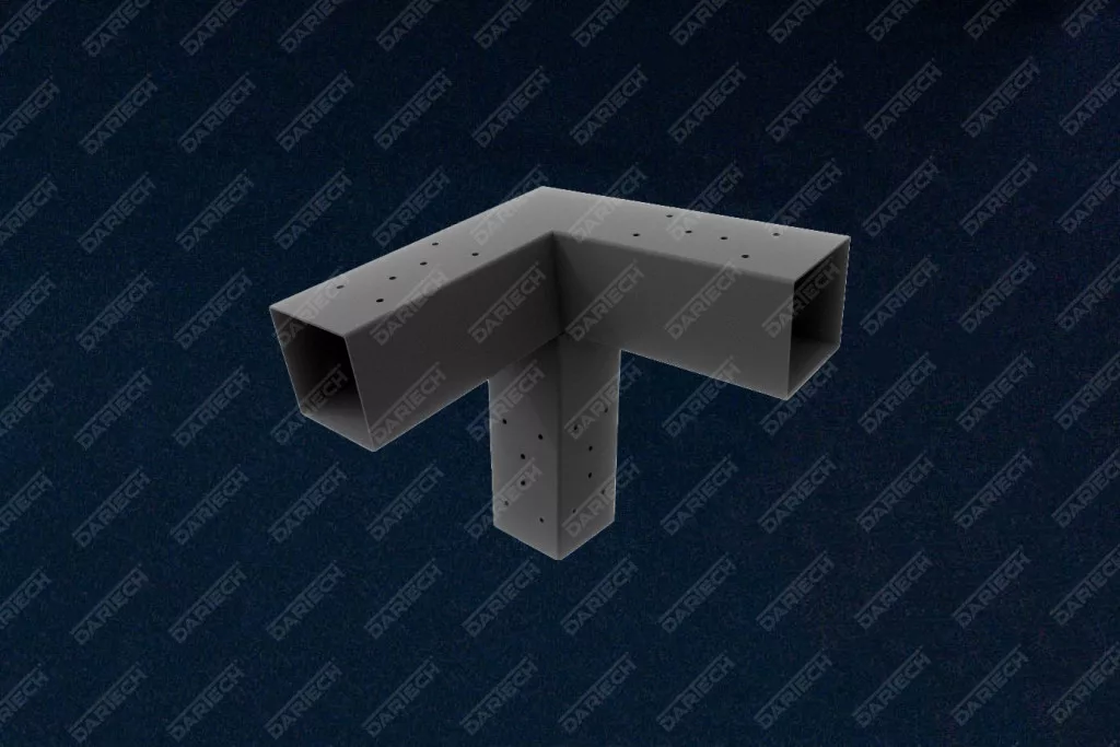 Az elemek 2 mm vastagságú acéllemezből készülnek, amelyet fekete porfestett bevonattal láttak el a maximális tartósság és korrózióvédelem érdekében. A csatlakozók belső mérete 94 × 94 mm, így ideális 100 × 100 mm-es (10 × 10 cm-es) gerendákhoz, figyelembe véve a gyalulás utáni méretcsökkenést.