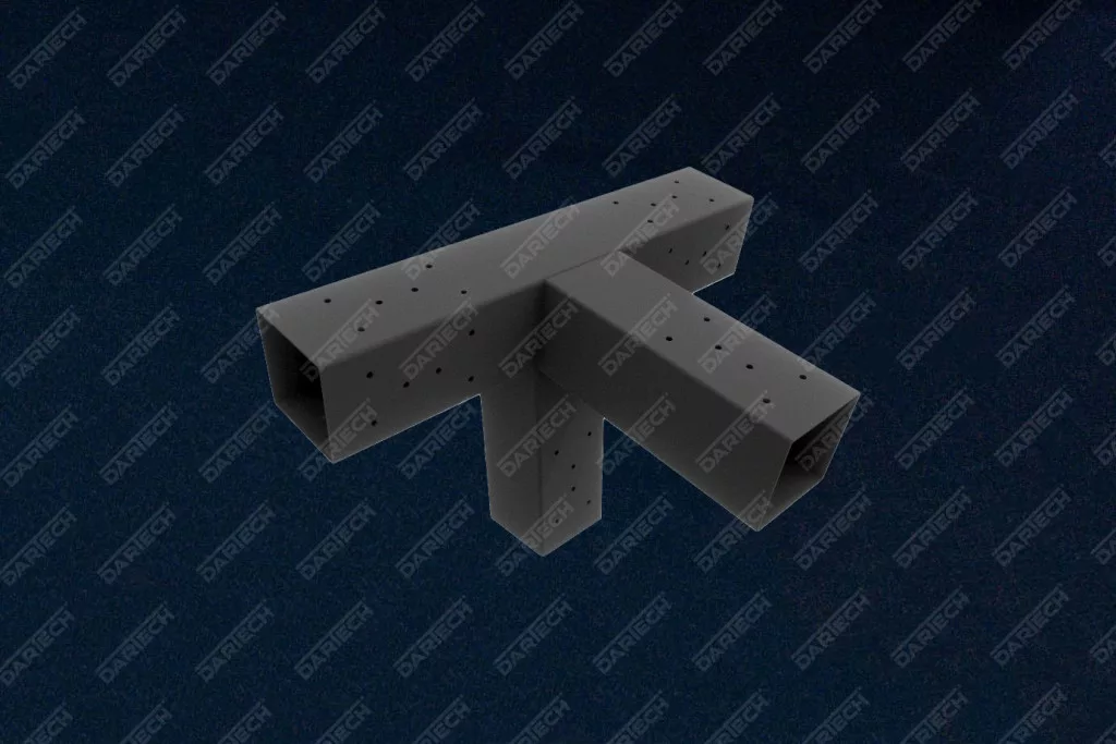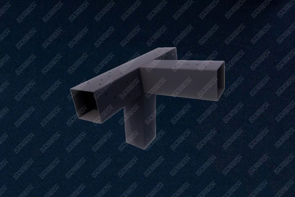 Az elemek 2 mm vastagságú acéllemezből készülnek, amelyet fekete porfestett bevonattal láttak el a maximális tartósság és korrózióvédelem érdekében. A csatlakozók belső mérete 94 × 94 mm, így ideális 100 × 100 mm-es (10 × 10 cm-es) gerendákhoz, figyelembe véve a gyalulás utáni méretcsökkenést.