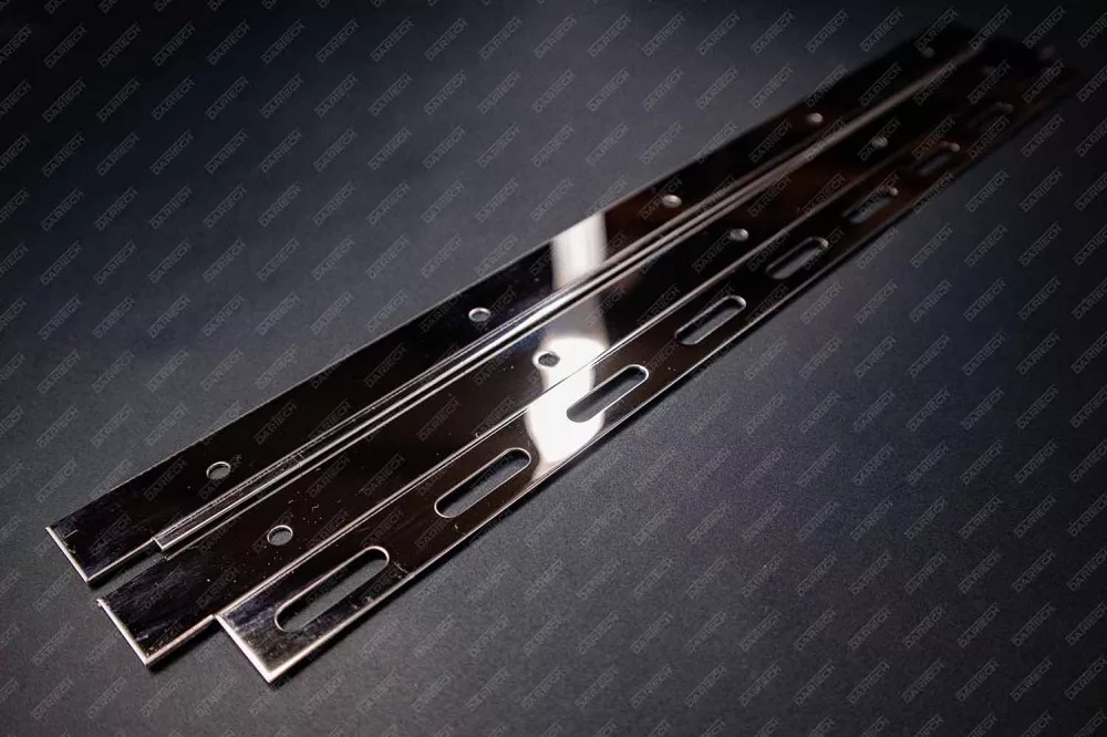 A saválló lemezpár 400 mm a PVC hőfüggönyök egyik legmebízhatóbb rögzítőeleme, amely kiválóan alkalmazható vegyszerállóságot és higiénikus környezetet igénylő létesítményekben. Anyaga rendkívül ellenálló a korrózióval, savakkal és különböző vegyszerekkel szemben, így kifejezetten ajánlott élelmiszeripari, gyógyszeripari és vegyipari alkalmazásra. A lemezpár biztosítja a PVC szalagok stabil rögzítését a kampósorhoz, megakadályozva azok elmozdulását vagy idő előtti leválását. Minden 400 mm széles PVC szalaggal kompatibilis, és popszegeccsel könnyen rögzíthető. Ideális új rendszerek telepítéséhez és meglévő rendszerek javításához.